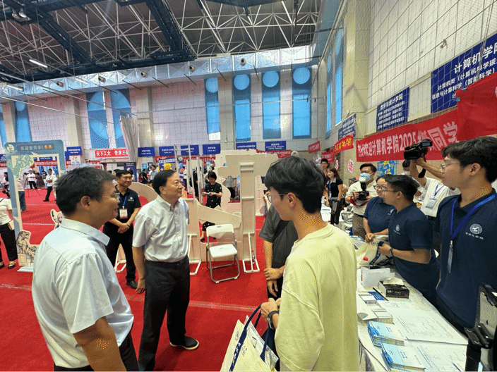 迎新期间,学校党委书记李言荣,党委副书记、副校长詹浩来到现场,与新生交流,了解学院报到情况。