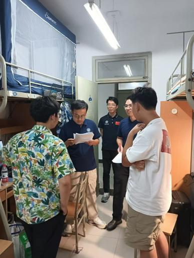 他们与同学们面对面交流,询问新生行李安置、宿舍设施使用等情况,耐心解答新生关于校园就餐、教学楼分布、一卡通使用等日常问题,减少新生初入校园的陌生感与拘谨感,拉近与学生的距离。同时重点关注偏远地区新生的适应情况,询问新生对校园气候、饮食的适应程度,以及与室友的相处状态,鼓励同学们遇到困难及时向老师反馈。同时,针对次日即将开展的数学分级考试,老师们逐一提醒新生提前熟悉考场、带齐证件、调整作息,确保考试顺利进行。