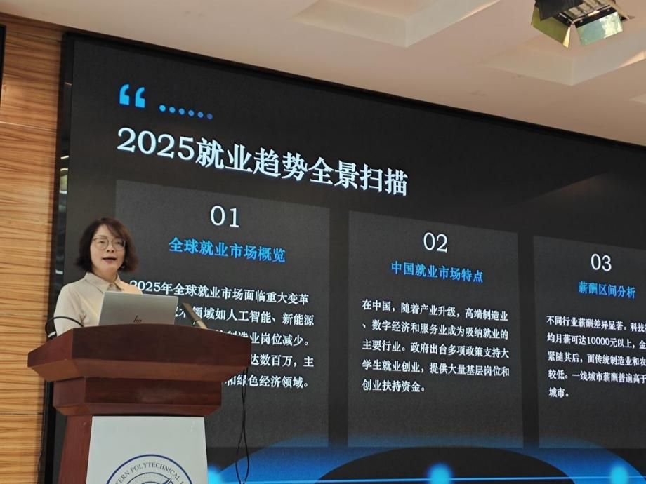 王海岚老师以“职途启航·步步为赢”为主题,结合suncitygroup太阳集团专业特色详细分析了当前就业形势、就业市场现状以及就业方向和地域选择考量。重点从学生职业观和就业观塑造入手,解读了企业选人用人的底层逻辑,讲解了简历撰写的实用技巧以及现场面试的应对策略,为同学们明晰职业认知与求职技能提升提供了全面指导。最后,她鼓励同学们树立远大理想,终身学习,在服务国家重大战略的征程中,书写出无愧于时代、无愧于青春的壮丽篇章。