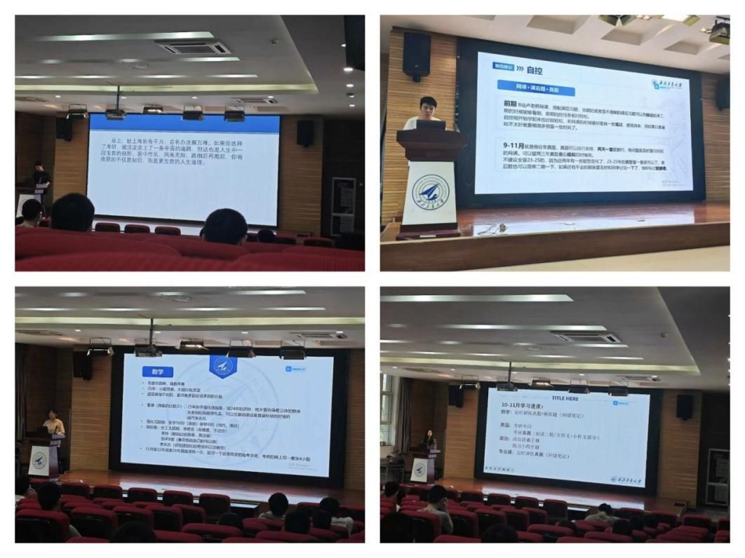 秦川、张睿玲、冯慧烜、郭小虎四位往届高分考生依次分享考研备考经验。他们结合自身经历,从院校与专业选择、备考整体规划、各科目复习方法、时间管理方式、压力疏解与心态调节等多方面,介绍了一系列实用且高效的备考策略。在答疑环节,他们逐一回答了如何进行差异化复习、瓶颈期应对等问题,为同学们科学规划考研进程、提升复习效率、坚定备考信心指明了方向、注入了动力。