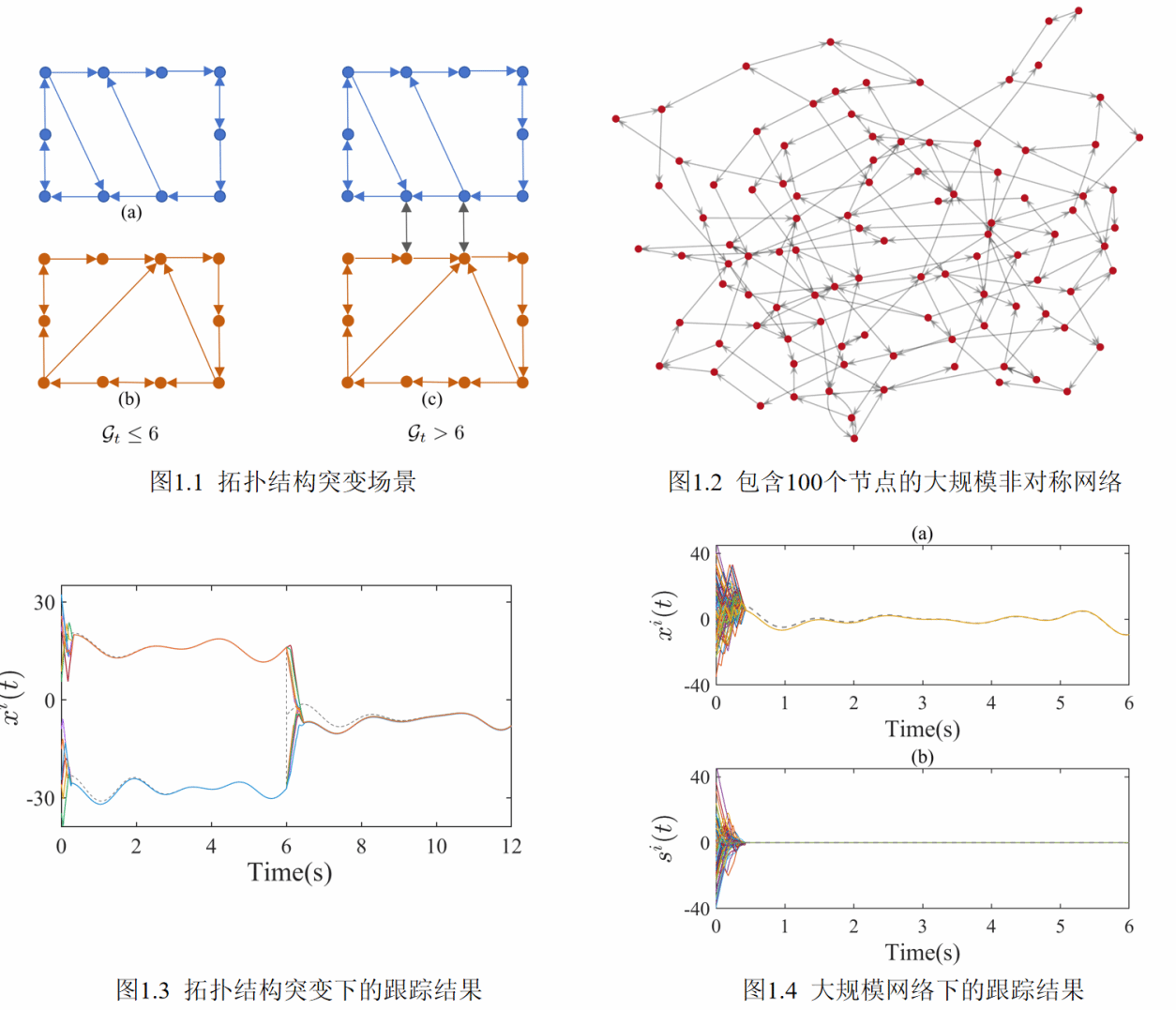 该研究提出的非光滑盈余分布式平均跟踪控制器展现出三方面显著优势:在非对称网络中具备有效跟踪能力、对网络拓扑结构突变具有良好适应性,并能够在大规模网络中保持较低的计算成本(图1)。在理论分析层面,针对传统二次型Lyapunov方法在非对称网络与非光滑分析融合失效的瓶颈问题,研究团队创新的构建出矩阵摄动与有向图上最小割的理论分析新方法,给出全新的稳定性分析技术。首次从底层拓扑视角给出了控制增益的稳定性条件,为复杂通信环境下的控制系统设计提供了坚实的理论方法。